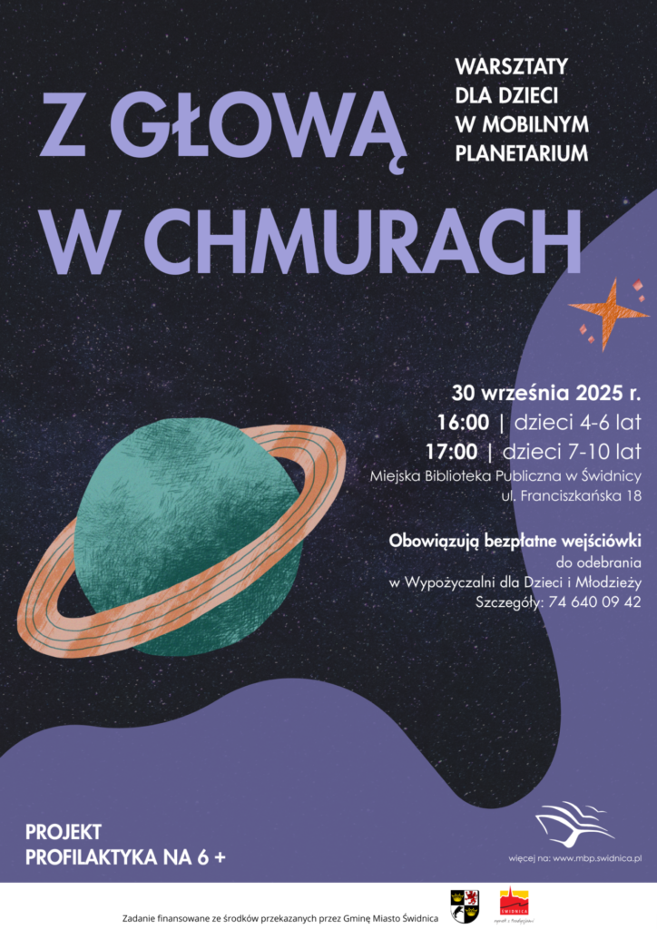 Miejska Biblioteka Publiczna w Świdnicy zaprasza do udziału dzieci w warsztatach astronomicznych w mobilnym obserwatorium. Planetarium to brama do nieograniczonych możliwości poznawania i rozumienia wszechświata. Niech każde dziecko stanie się małym astronautą i odkryje z nami kosmos !!!