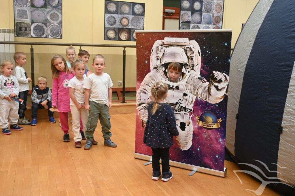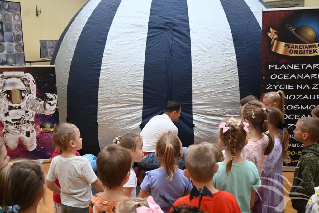W dniu 30 września w naszej bibliotece odbyły się podwójne warsztaty dla dzieci w mobilnym planetarium. Uczestnicy mieli okazję przenieść się w kosmiczną podróż i poznać tajemnice Układu Słonecznego, gwiazd i planet. Dzieci dowiedziały się m.in. jak powstają gwiazdy, czym różnią się planety oraz jakie zjawiska można obserwować na nocnym niebie.