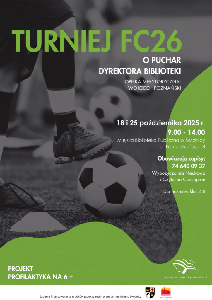 Miejska Biblioteka Publiczna w Świdnicy zaprasza uczniów klas 4–8 świdnickich szkół podstawowych do udziału w Turnieju FC26 o Puchar Dyrektora Biblioteki!