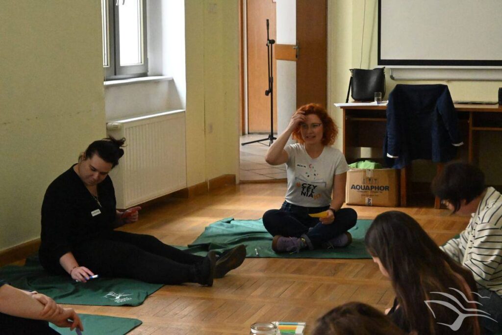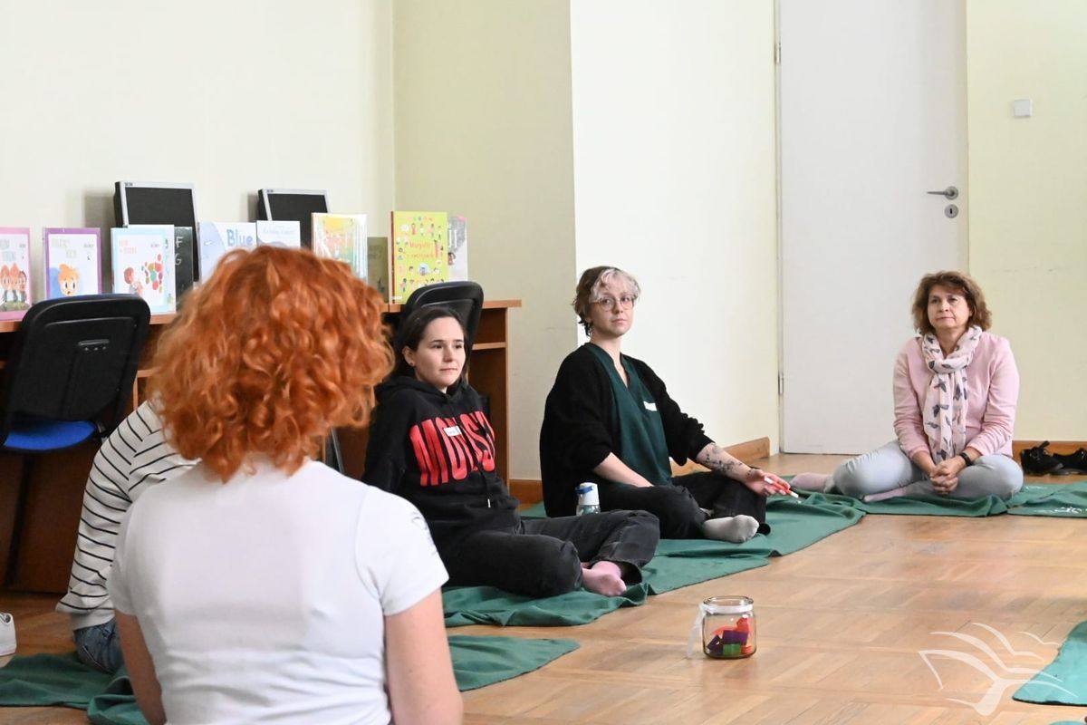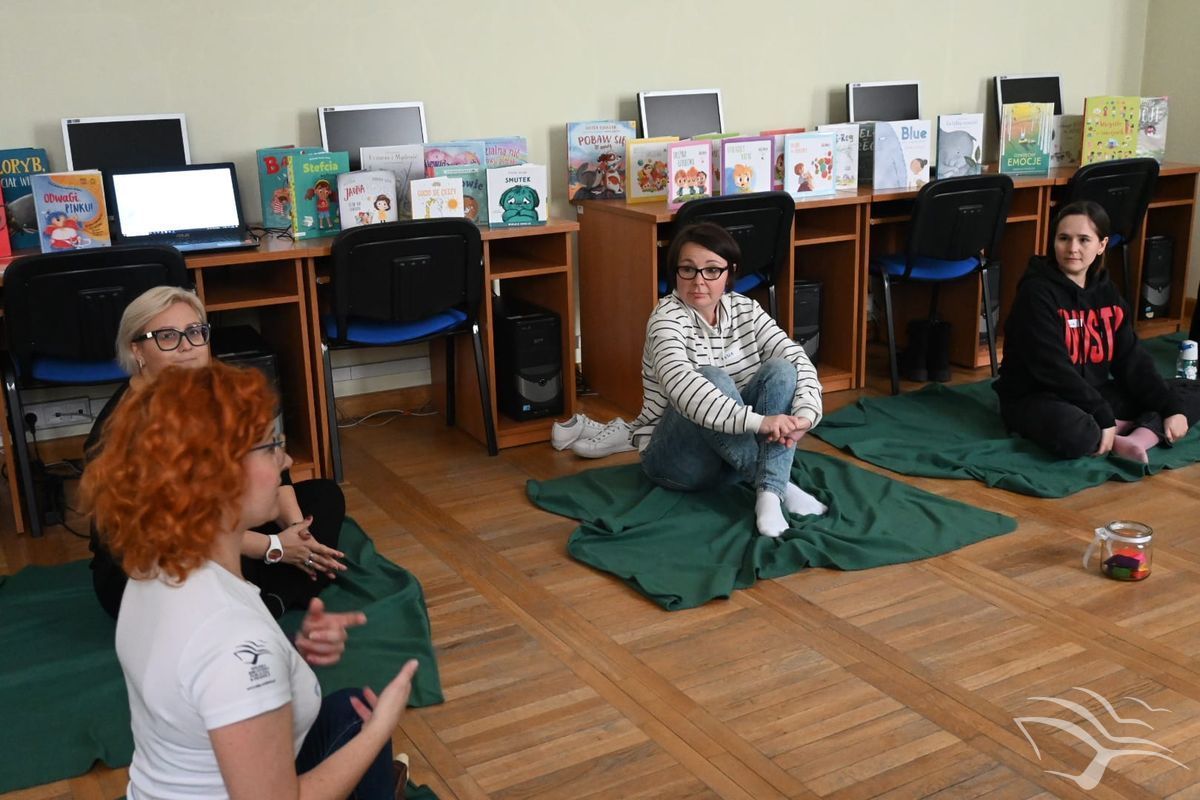 Ania Podbielska, na co dzień kierowniczka Filii nr 2, opowiedziała o naszej pracy, a tytuł jej wystąpienia brzmiał „Ukoić emocje”, a Monika Turzańska – kierowniczka Wypożyczalni dla Dzieci i Młodzieży – poprowadziła warsztat „Ukoić emocje w praktyce”.