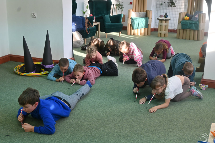 W październiku Dizajnersi poznali zabawy związane z Halloween. Podczas zajęć dzieci miały okazję wziąć udział w wyścigu pająków, sprawdzić swoje umiejętności w halloweenowych kalamburach, a także przeprowadzić ciekawy eksperyment. Na zakończenie każdy uczestnik zaprojektował swojego własnego duszka.