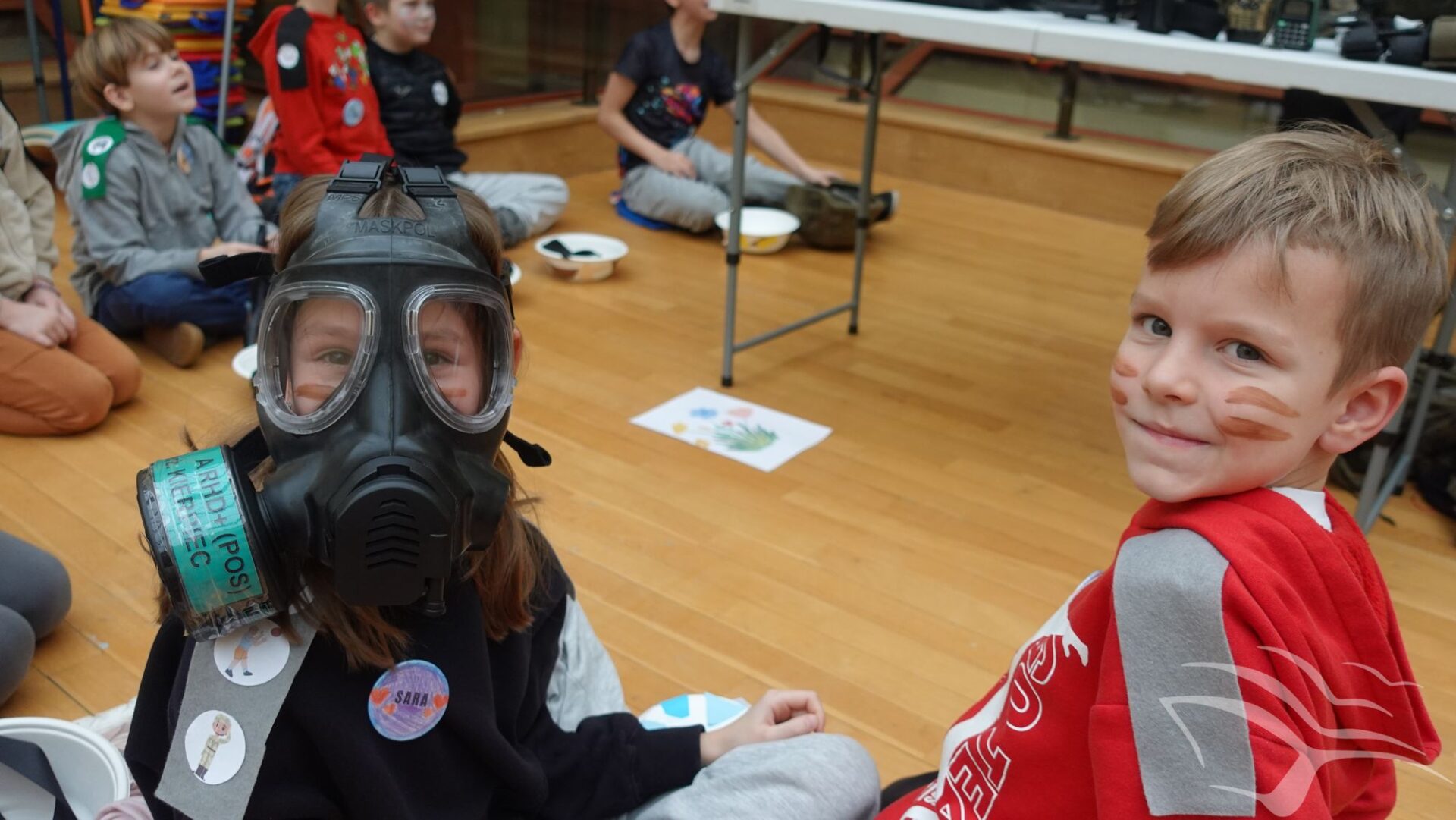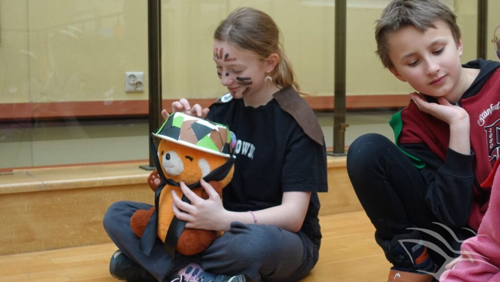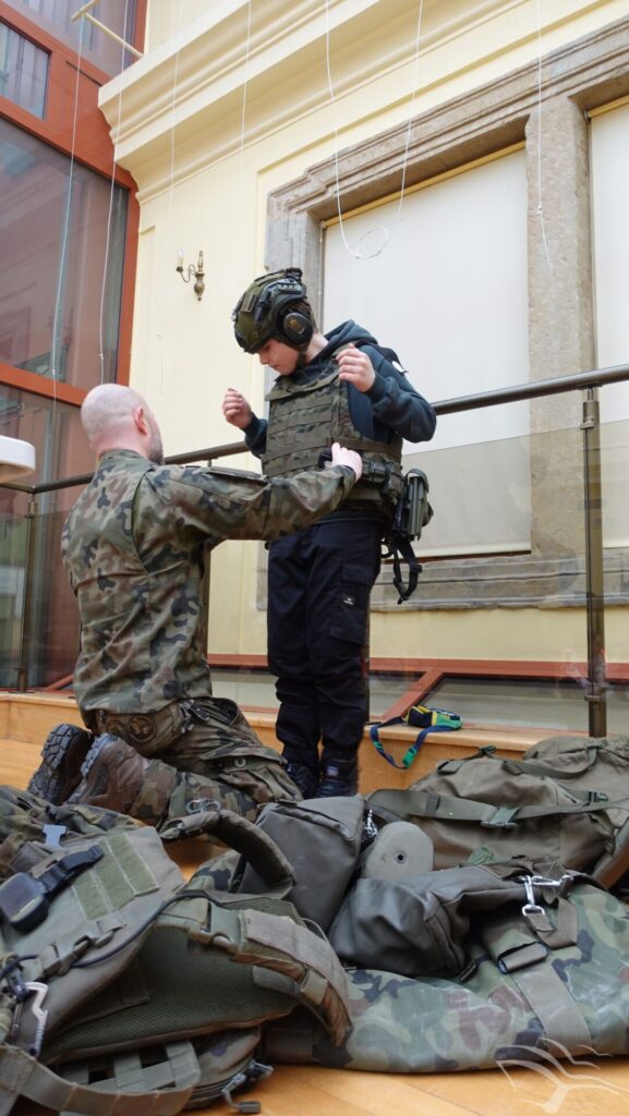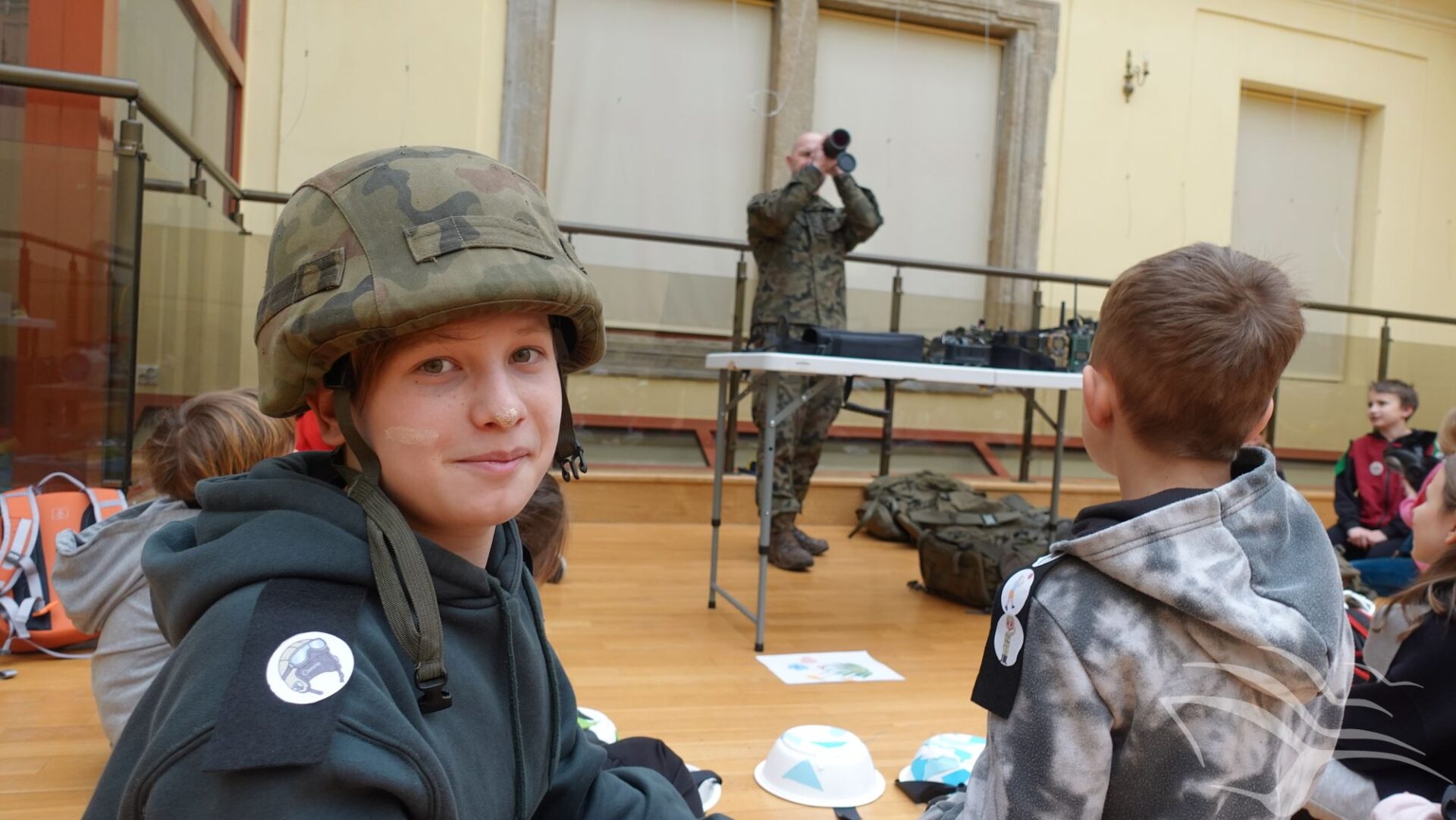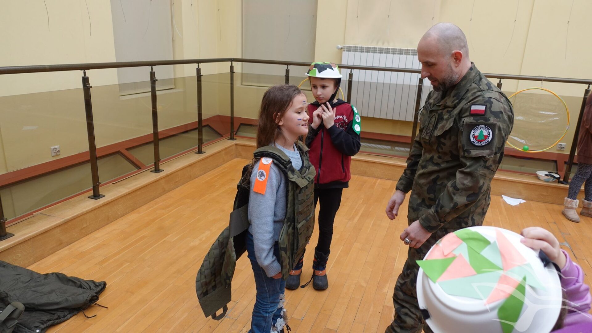 Zawód nie z tej Ziemi… na pierwszy ogień poszedł żołnierz! We własnoręcznie przygotowanym rynsztunku odebraliśmy lekcję musztry, było trochę ruchu i dużo śmiechu, bo nie każdemu „baczność” wychodziła idealnie. A nasz gość specjalny – młodszy chorąży Dawid Wojciechowski z Ośrodka Szkolenia Piechoty w Dusznikach Zdrój, pokazał, że zawód żołnierza to nie tylko „padnij–powstań”, ale też spryt, odwaga i sporo umiejętności.