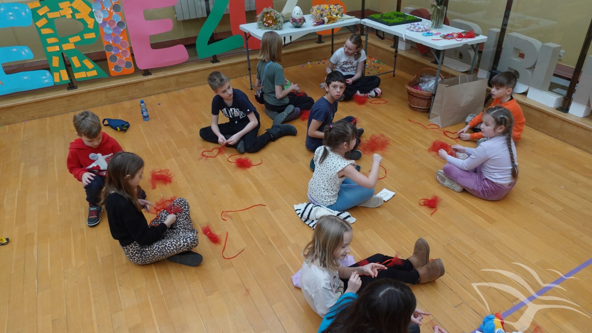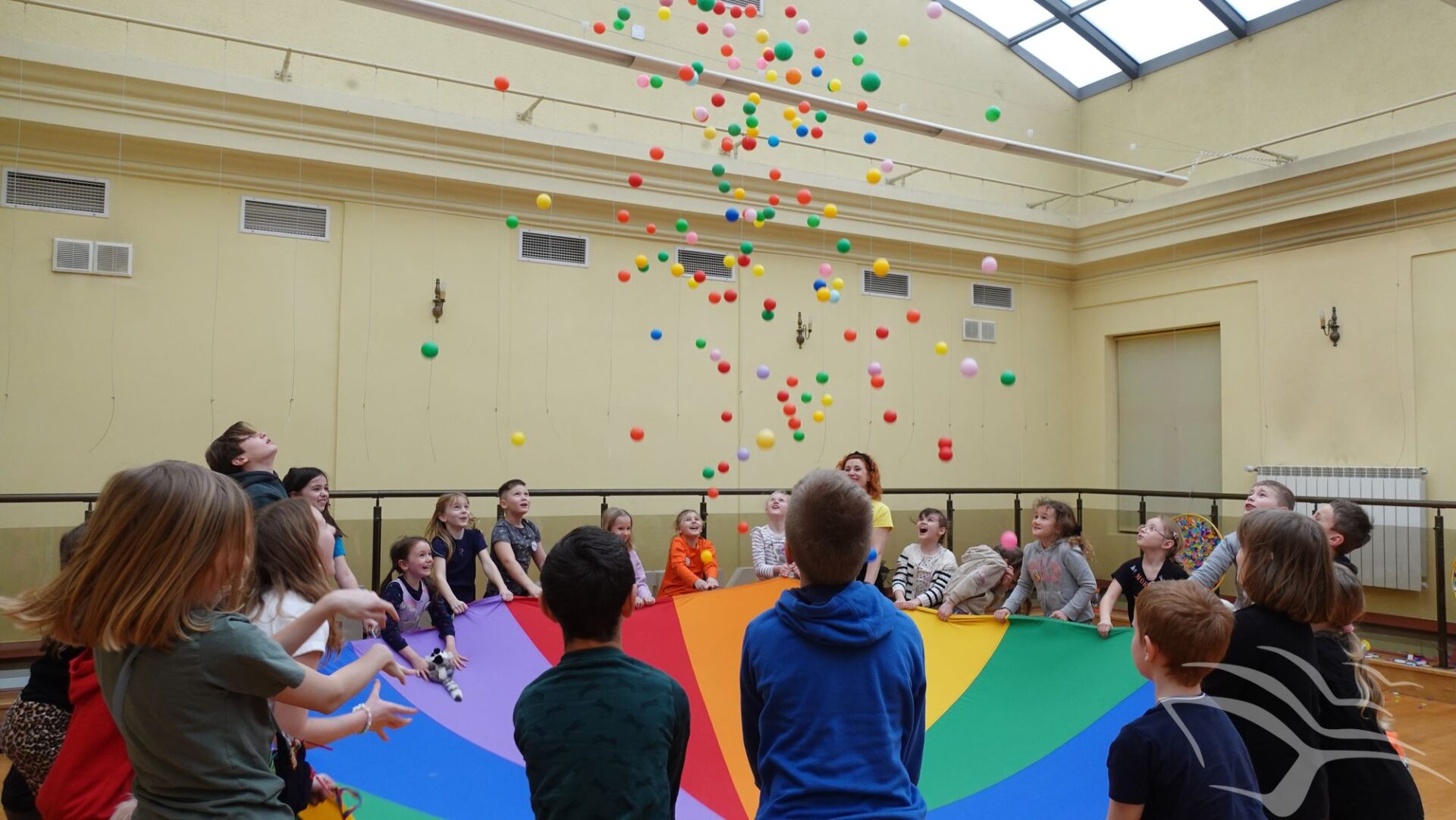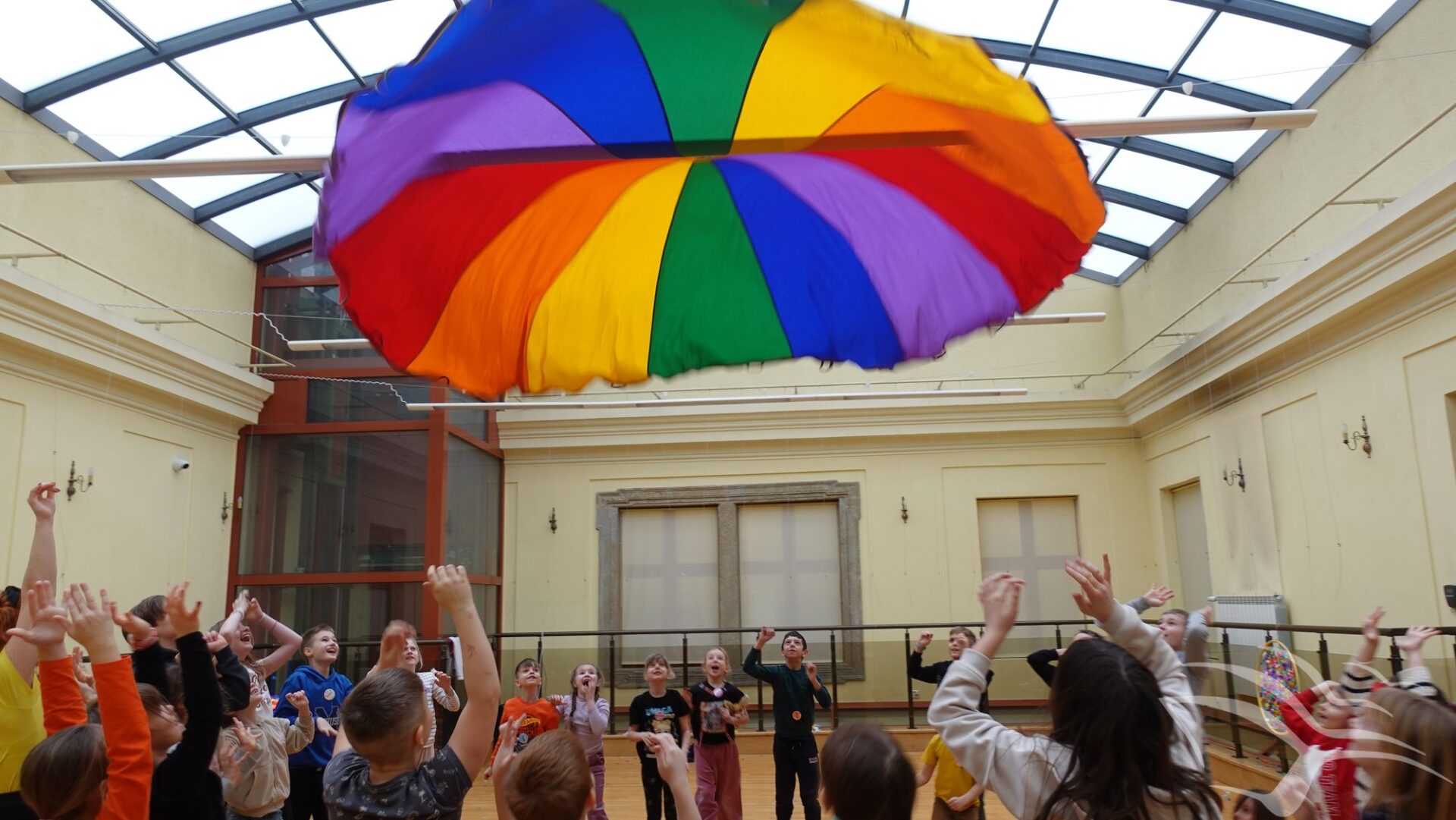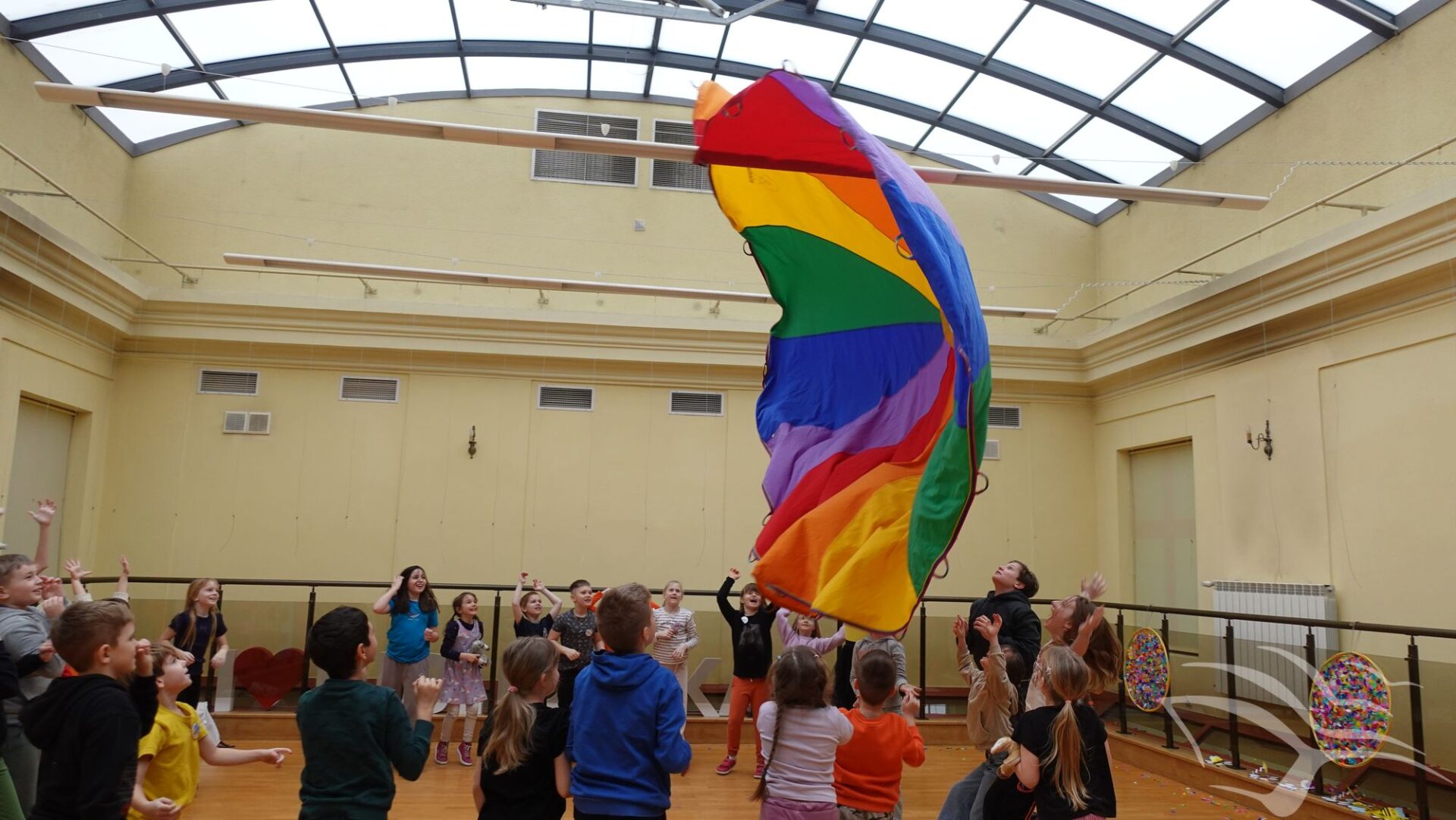 Zawód nie z tej Ziemi… zrobiło się wyjątkowo kolorowo i pachnąco, bo tematem dnia był zawód florysta. Powstawały tiulowe, serduszkowe wianki – było trochę plątania, trochę wiązania i całkiem sporo radosnych okrzyków. Za pomocą chusty, szarf i pyłku wyczarowaliśmy kolorową łąkę.