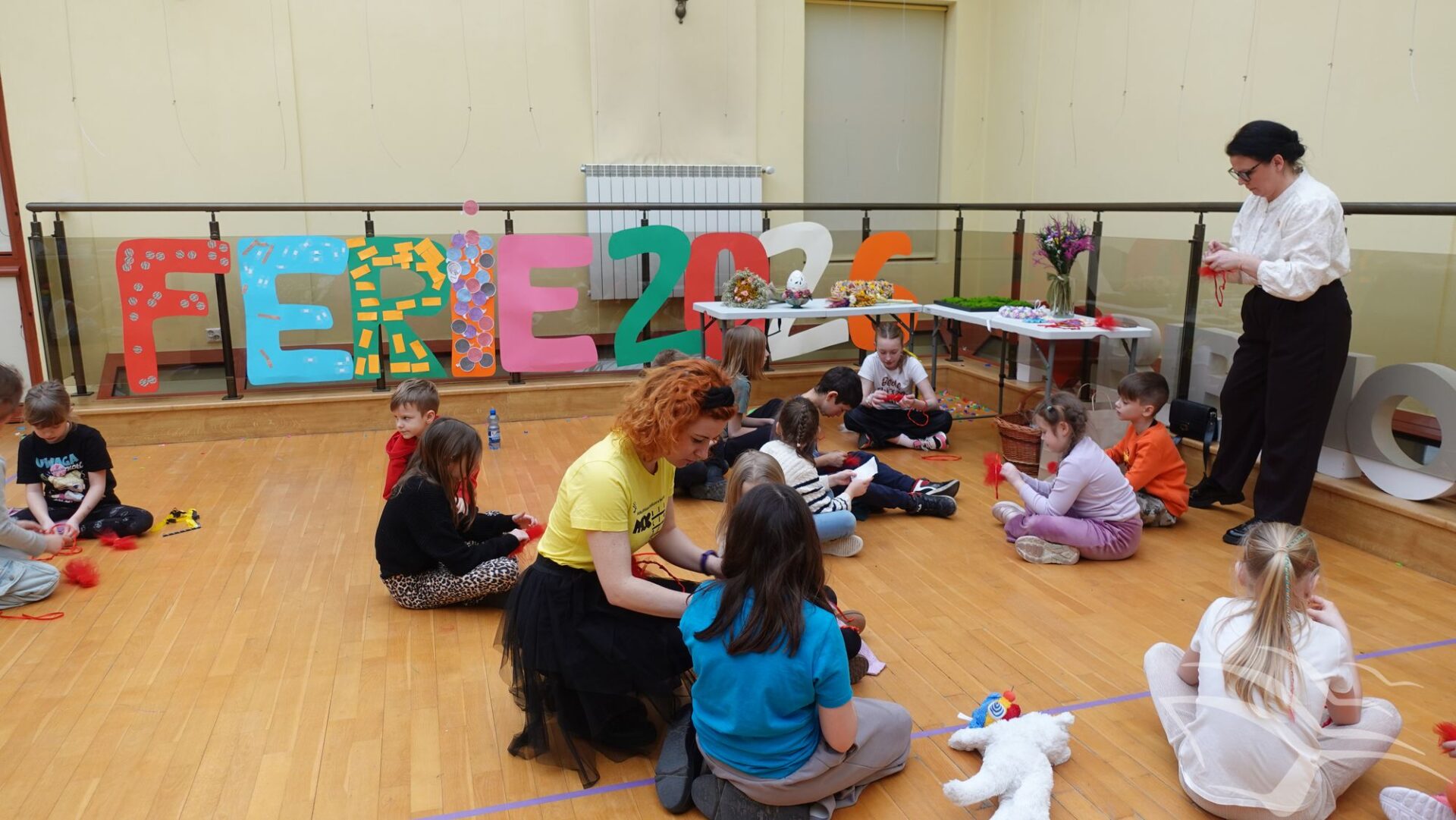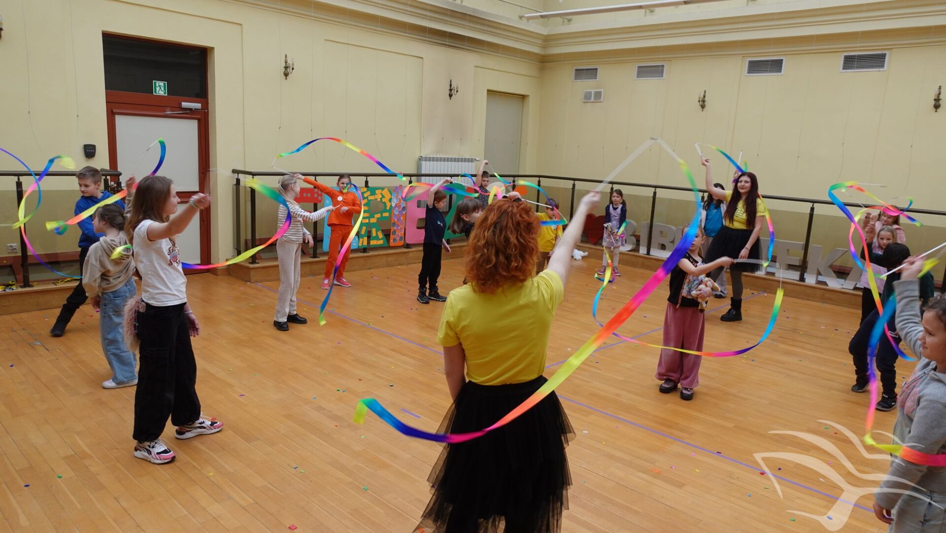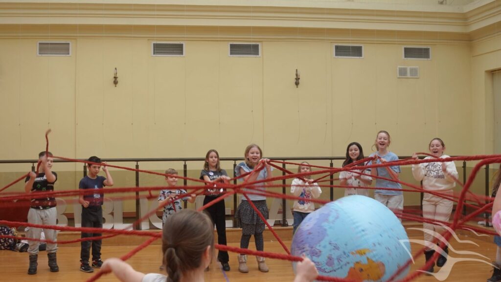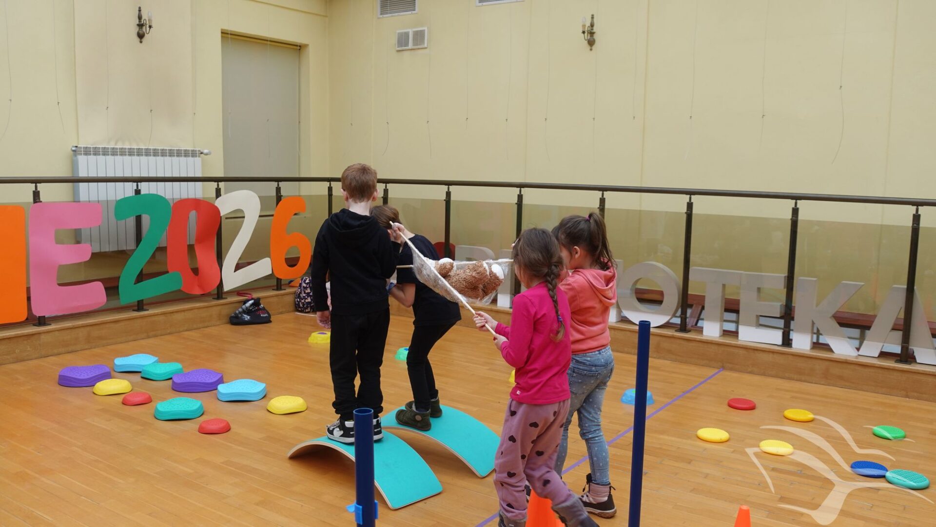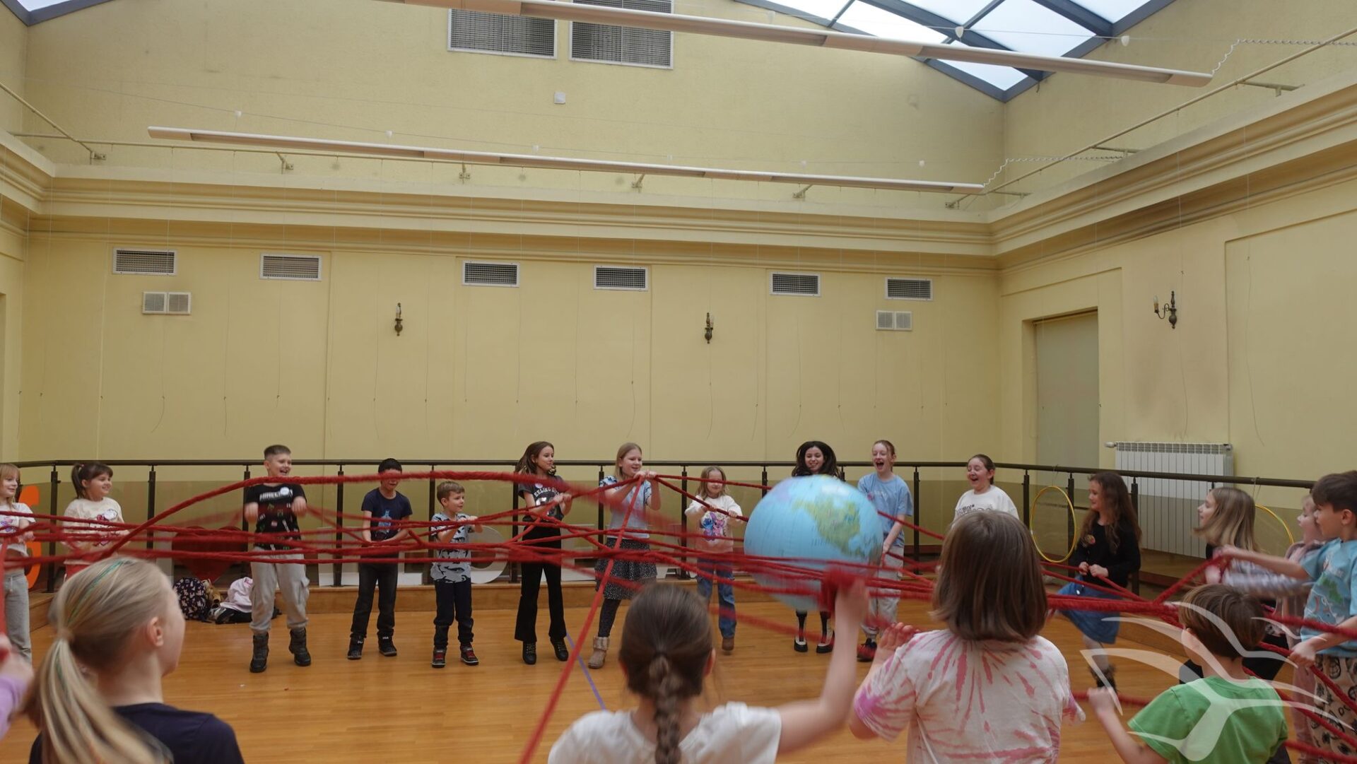 Zawód nie z tej Ziemi… zrobiło się wyjątkowo kolorowo i pachnąco, bo tematem dnia był zawód florysta. Powstawały tiulowe, serduszkowe wianki – było trochę plątania, trochę wiązania i całkiem sporo radosnych okrzyków. Za pomocą chusty, szarf i pyłku wyczarowaliśmy kolorową łąkę.