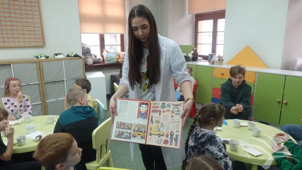 Zawód nie z tej Ziemi… Ratownik medyczny – szybka reakcja, wielka pomoc! Gościem spotkania była druhna Ania Kułak, która opowiedziała uczestnikom o podstawach pierwszej pomocy. Dzieci dowiedziały się, jak prawidłowo wezwać pomoc, sprawdzić przytomność poszkodowanego oraz jak zachować się w sytuacjach zagrożenia.