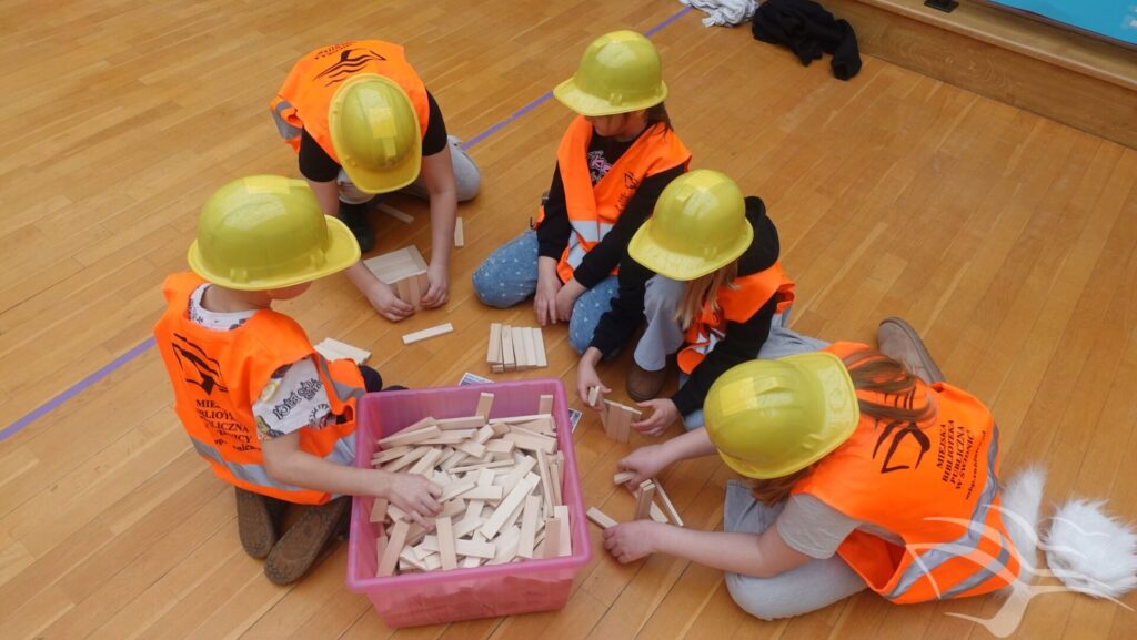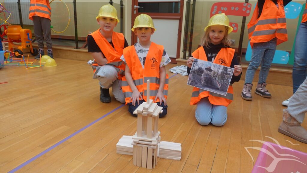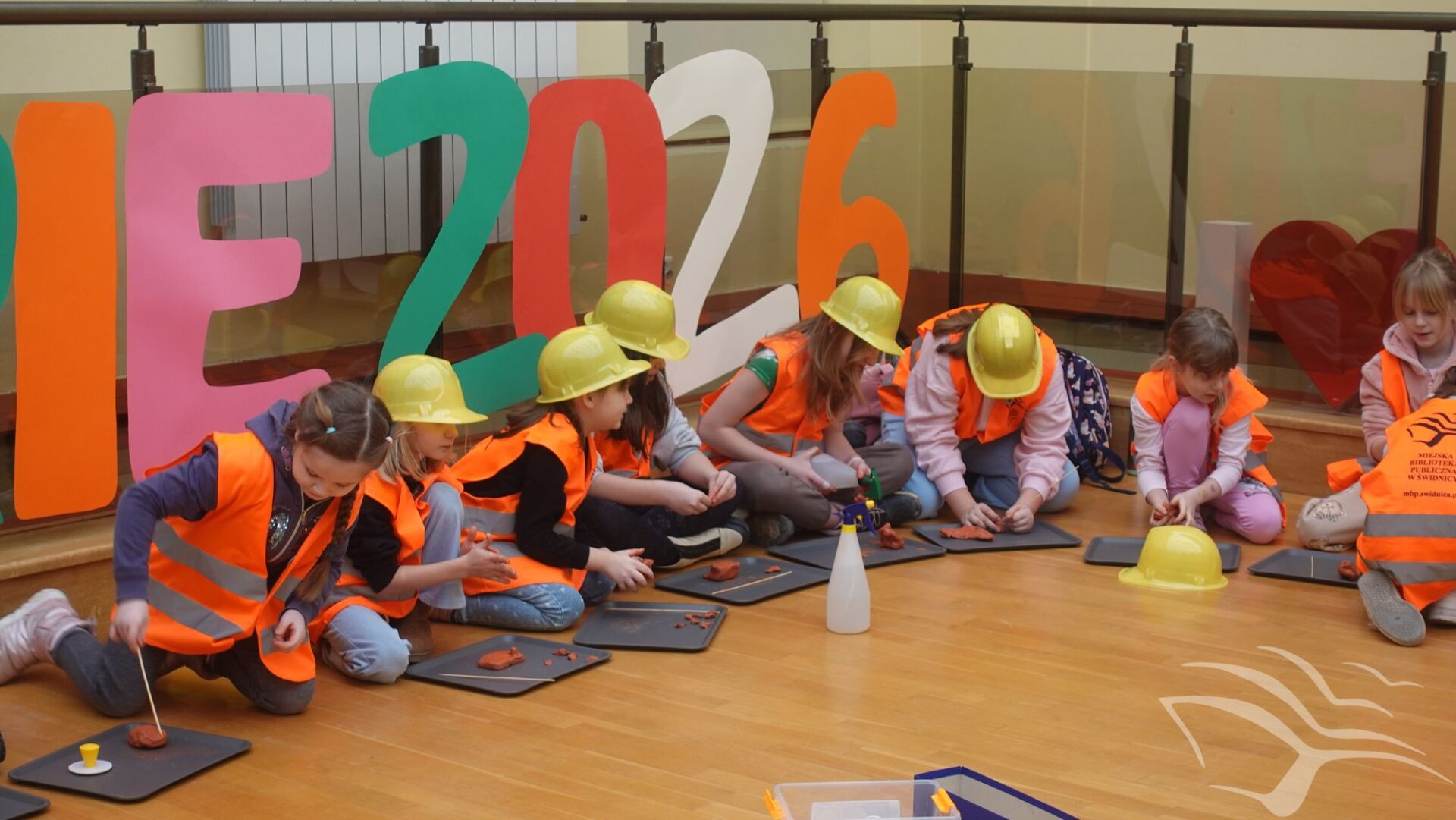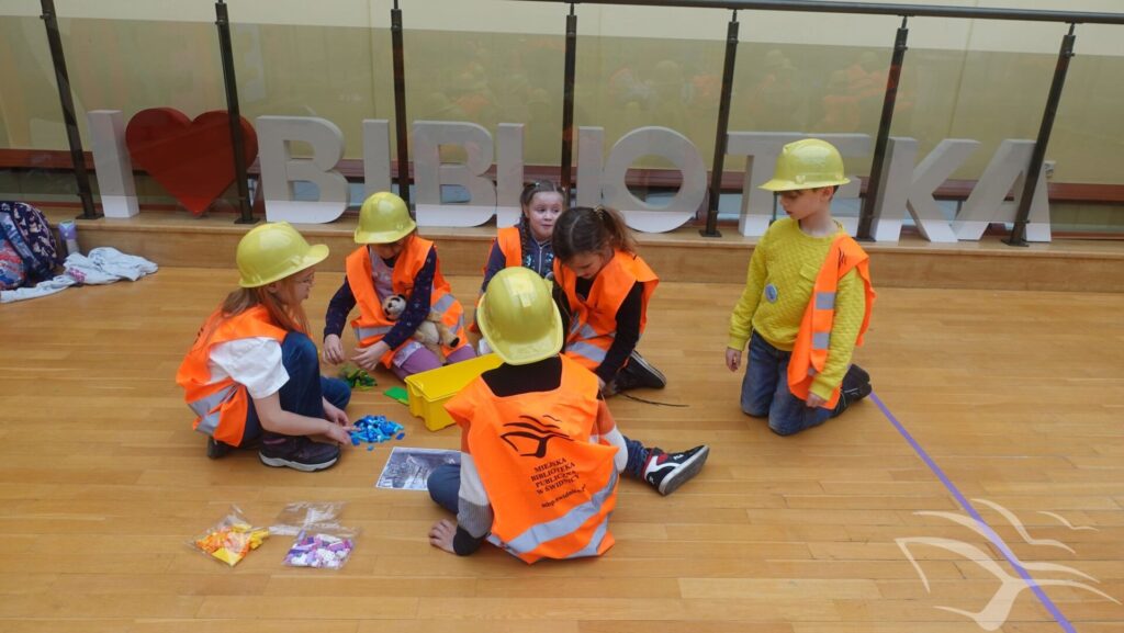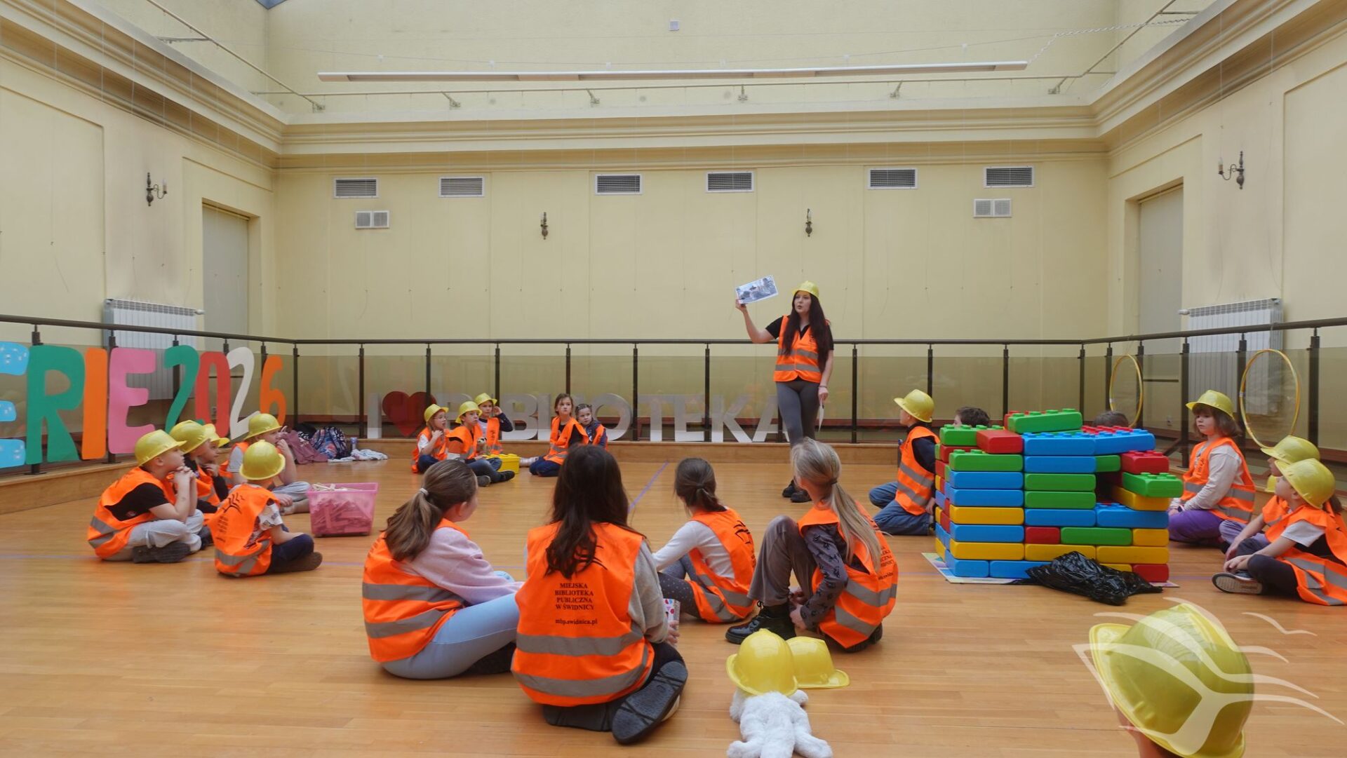 Zawód nie z tej Ziemi… Tematem przewodnim dzisiejszego dnia był budowlaniec, a biblioteka zamieniła się w prawdziwy plac budowy. Dzieci wcieliły się w rolę małych konstruktorów, poznając tajniki pracy na budowie oraz narzędzia niezbędne w tym zawodzie. Wspólne zabawy, zagadki i prace plastyczne pozwoliły uczestnikom stworzyć własne projekty znanych świdnickich budowli.