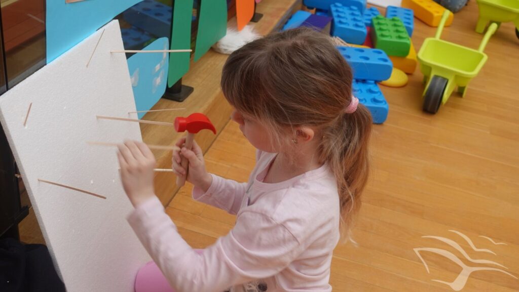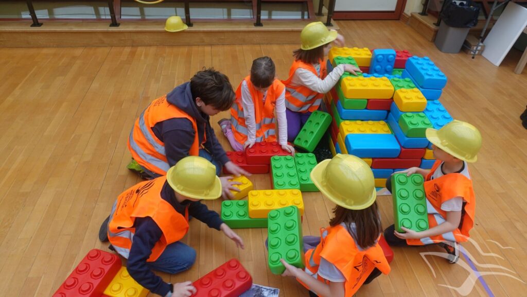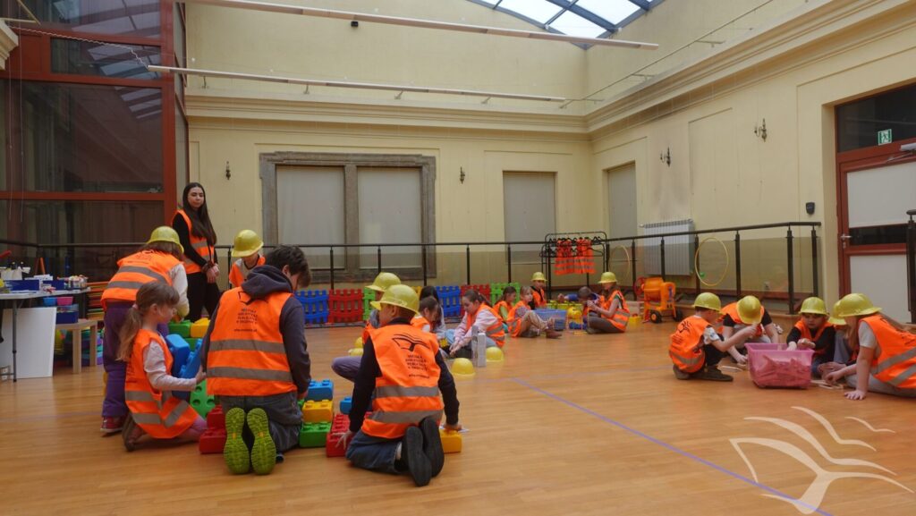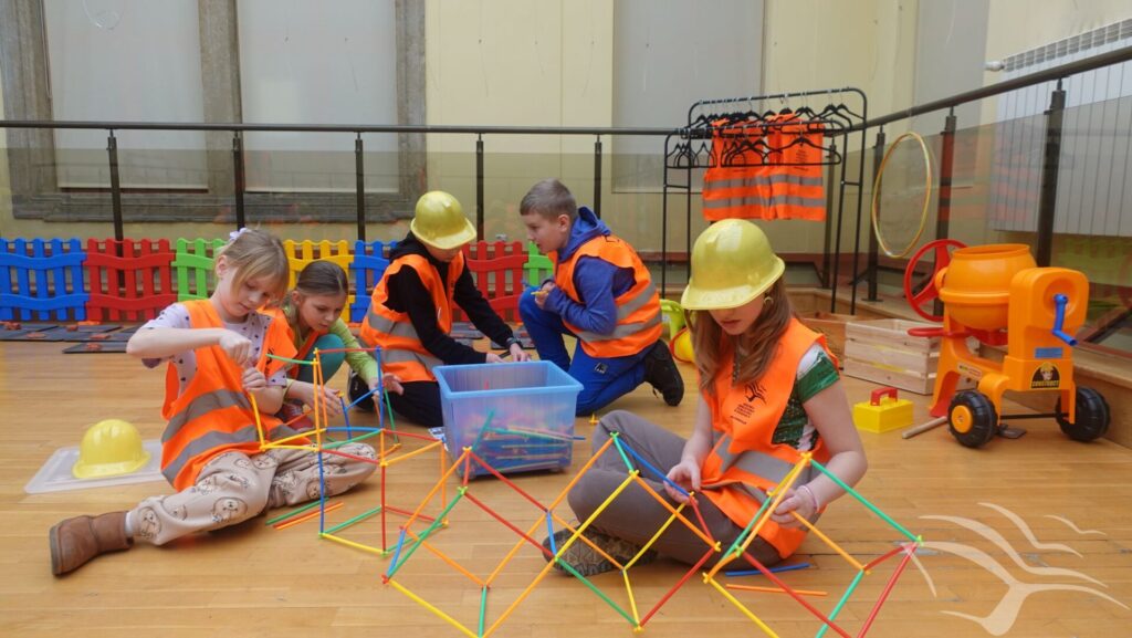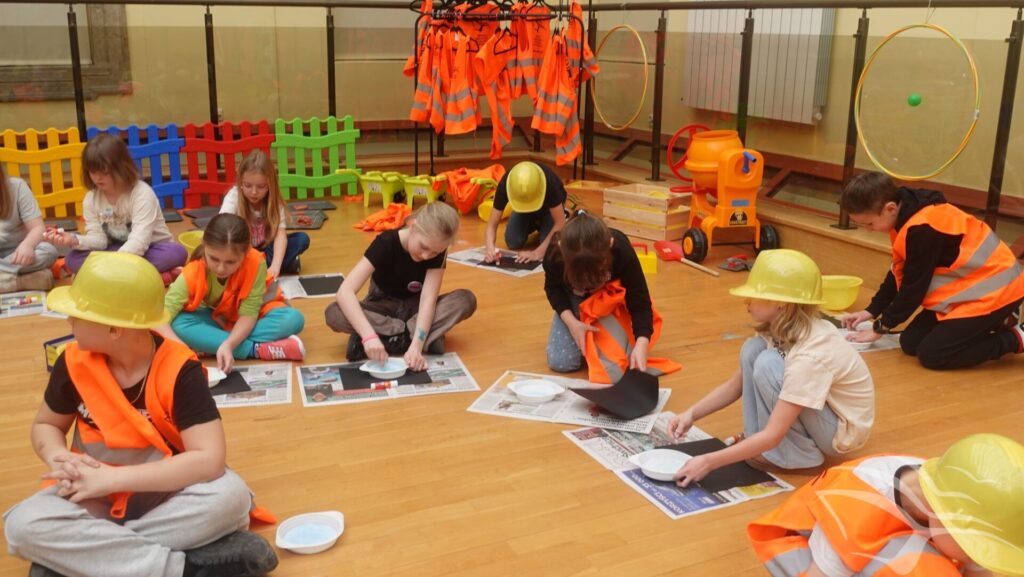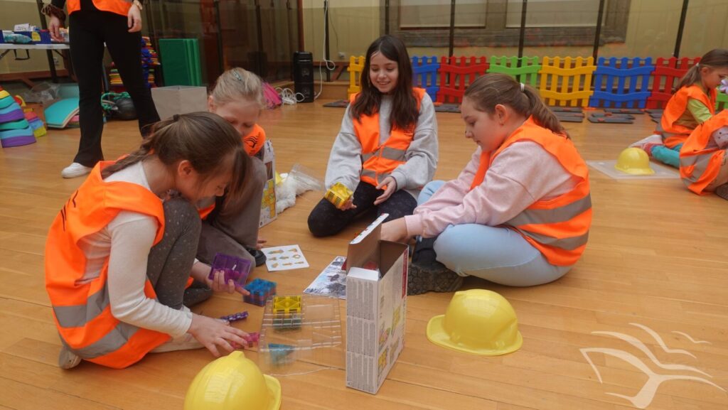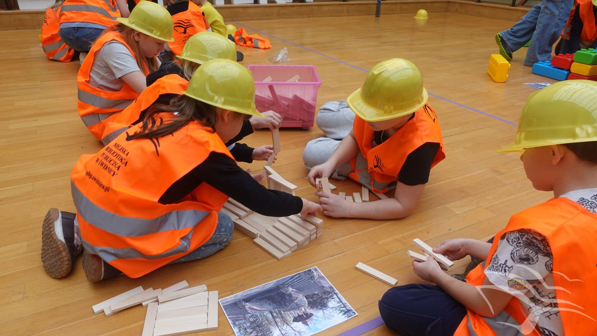 Zawód nie z tej Ziemi… Tematem przewodnim dzisiejszego dnia był budowlaniec, a biblioteka zamieniła się w prawdziwy plac budowy. Dzieci wcieliły się w rolę małych konstruktorów, poznając tajniki pracy na budowie oraz narzędzia niezbędne w tym zawodzie. Wspólne zabawy, zagadki i prace plastyczne pozwoliły uczestnikom stworzyć własne projekty znanych świdnickich budowli.