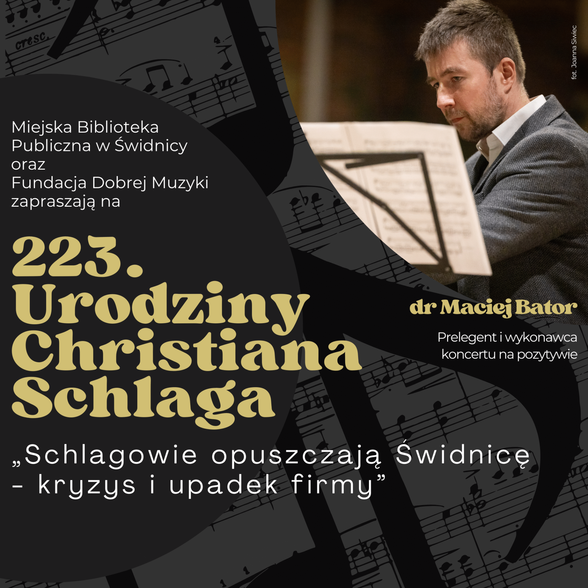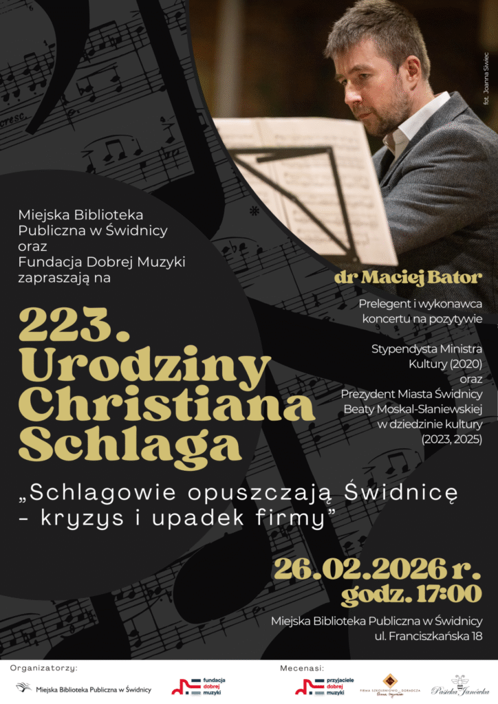 Miejska Biblioteka Publiczna w Świdnicy i Fundacja Dobrej Muzyki zapraszają na spotkanie poświęcone niezwykłemu dokumentowi pamięci – pamiętnikowi rodziny Schlagów, świdnickich budowniczych organów.