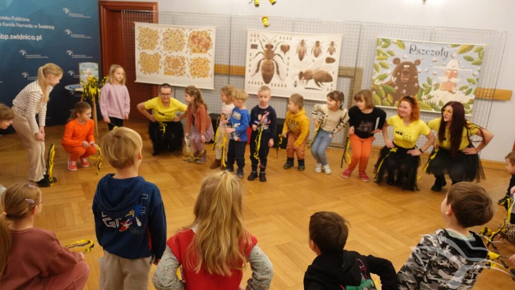 Wydarzenie zostało przygotowane specjalnie z myślą o najmłodszych czytelnikach i połączone z warsztatami plastycznymi. Podczas spotkania dzieci wysłuchały wiersza „Pszczoła” autorstwa Bronisławy Ostrowskiej, wspólnie zatańczyły „pszczeli taniec”, a na zakończenie wykonały pracę plastyczną – pszczółkę siedzącą na stokrotce z miodkowym skarbem.