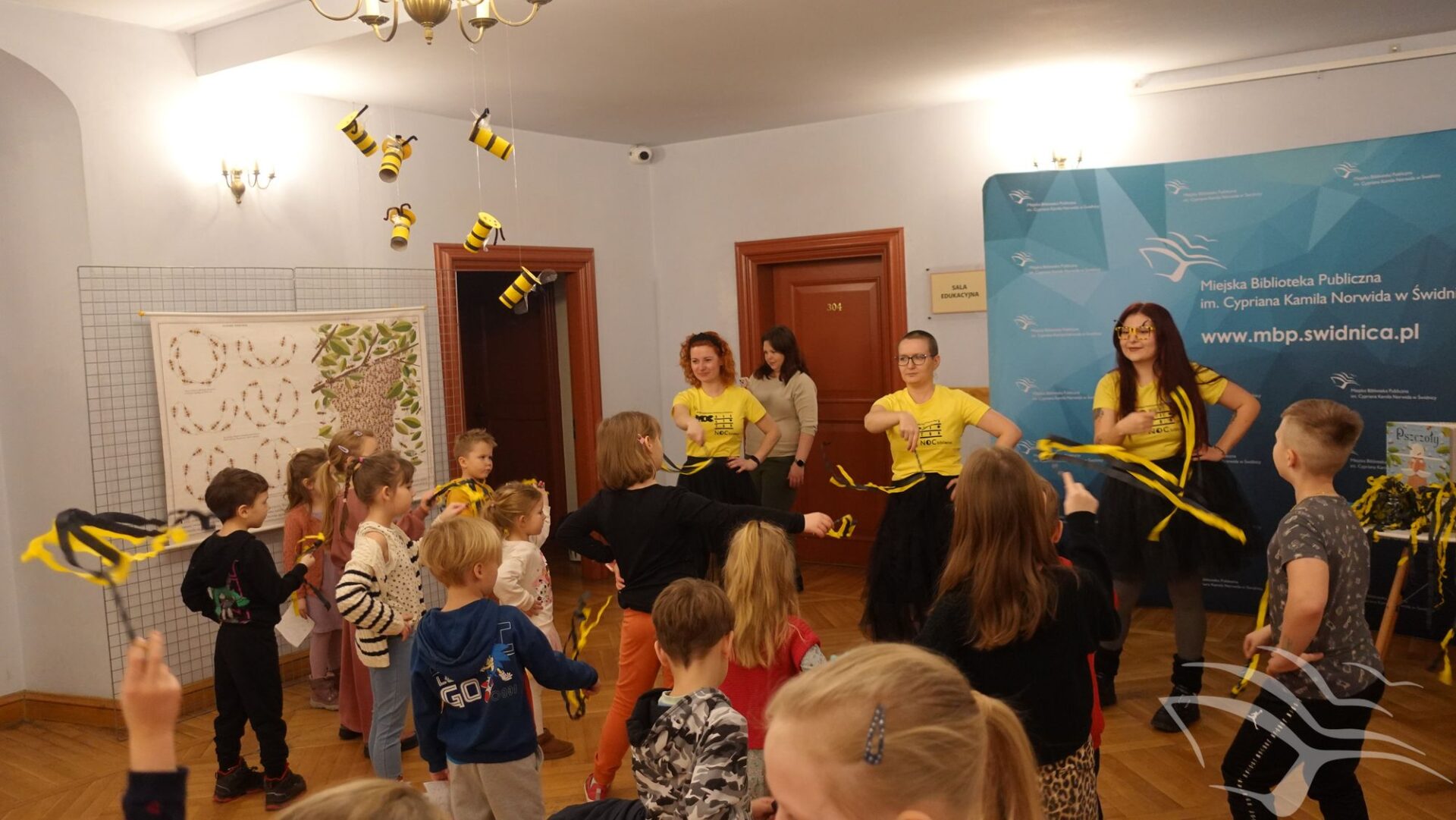 Wydarzenie zostało przygotowane specjalnie z myślą o najmłodszych czytelnikach i połączone z warsztatami plastycznymi. Podczas spotkania dzieci wysłuchały wiersza „Pszczoła” autorstwa Bronisławy Ostrowskiej, wspólnie zatańczyły „pszczeli taniec”, a na zakończenie wykonały pracę plastyczną – pszczółkę siedzącą na stokrotce z miodkowym skarbem.