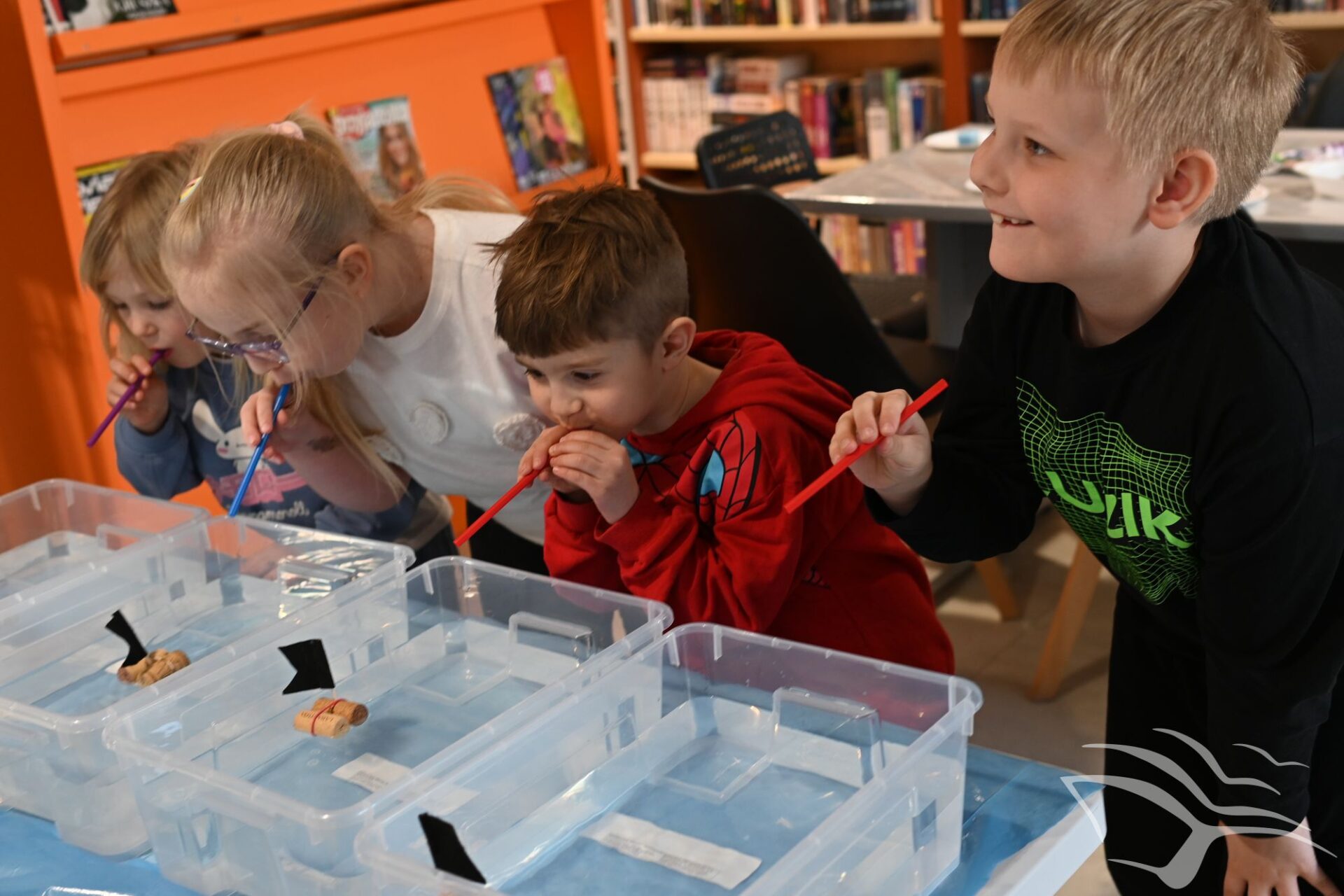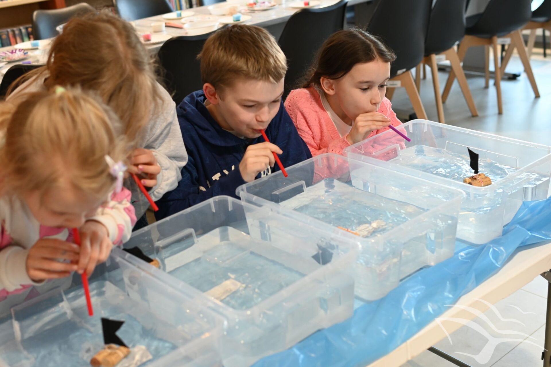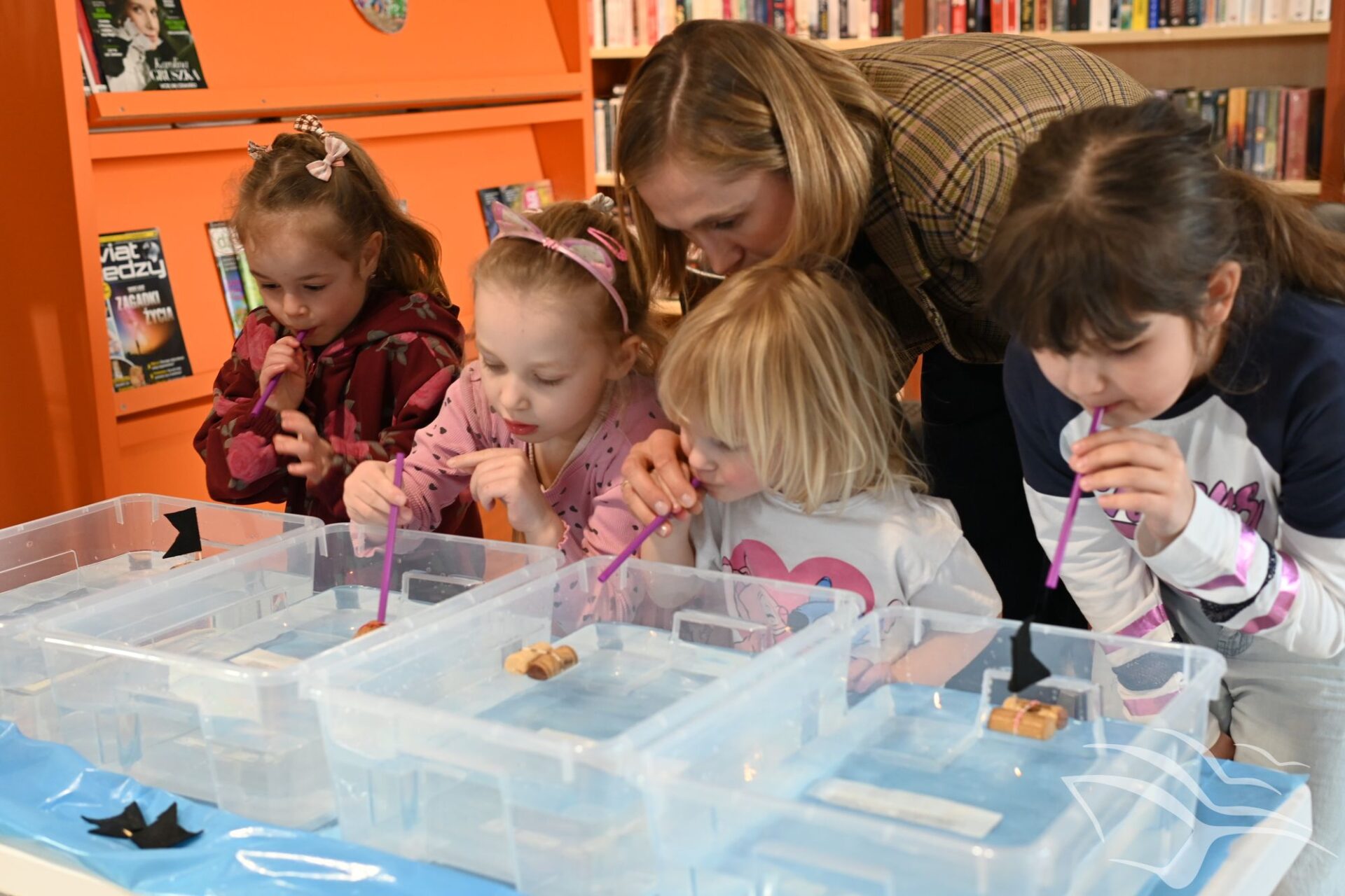 W kolejnej części spotkania odbyła się zabawa w statki. Uczestnicy rywalizowali, kto jako pierwszy, dmuchając przez słomkę, doprowadzi swój papierowy statek do mety na wodzie. Nie zabrakło także „przeszkadzaczy”, którzy machając kartkami tworzyli wiatr wiejący w przeciwną stronę, utrudniając zadanie zawodnikom.