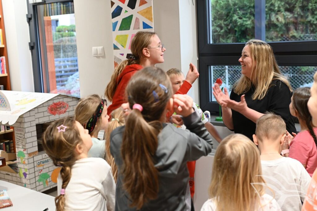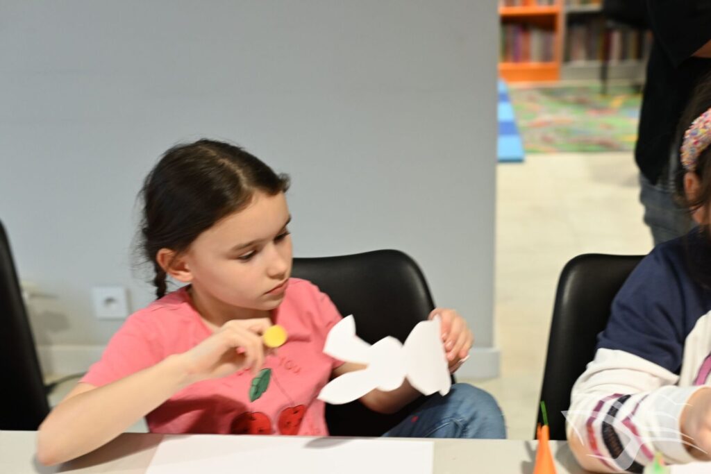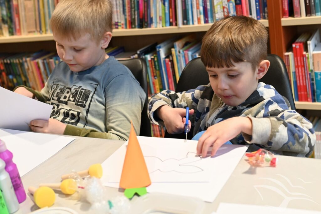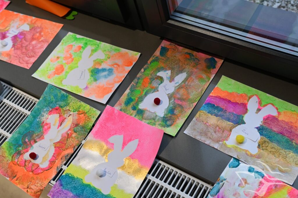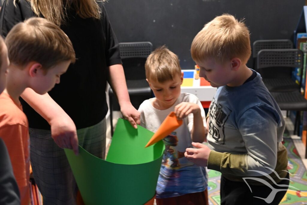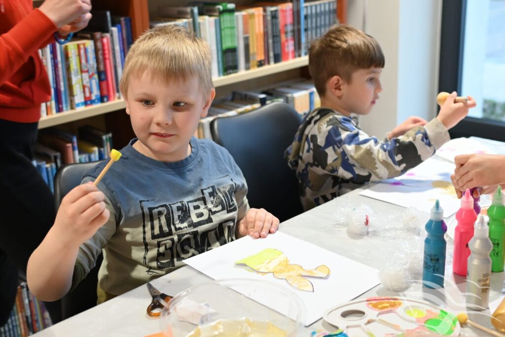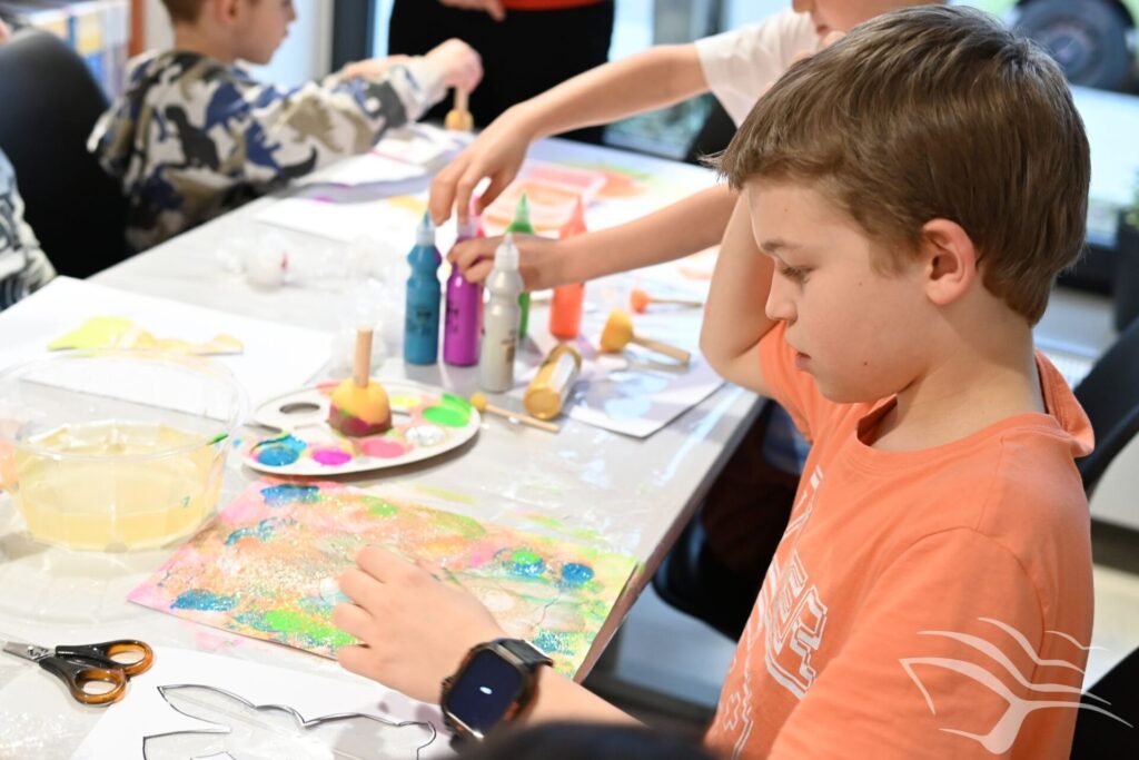 Następnie dzieci wcieliły się w rolę detektywów: szukały ukrytych tropów i rozwiązywały zagadki, które doprowadziły je do odnalezienia skarbu. Na zakończenie zajęć uczestnicy stworzyli własne, kolorowe króliki, wykorzystując farby i różnorodne materiały plastyczne.
