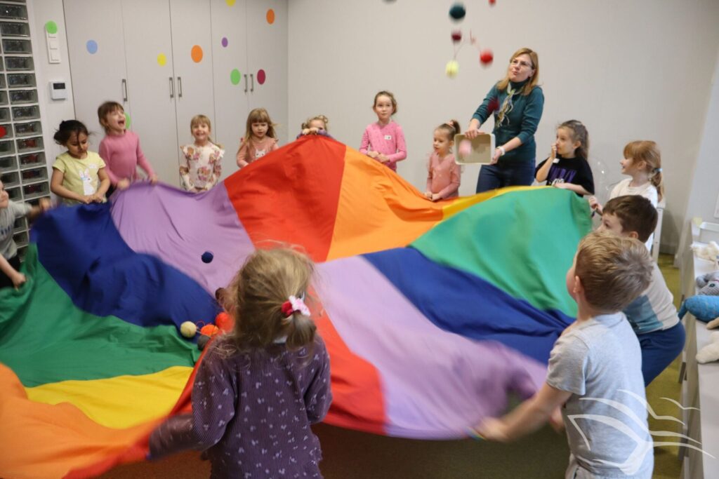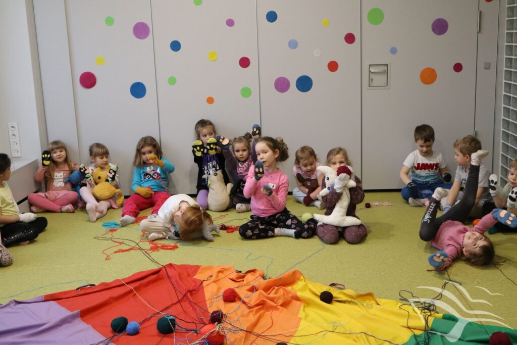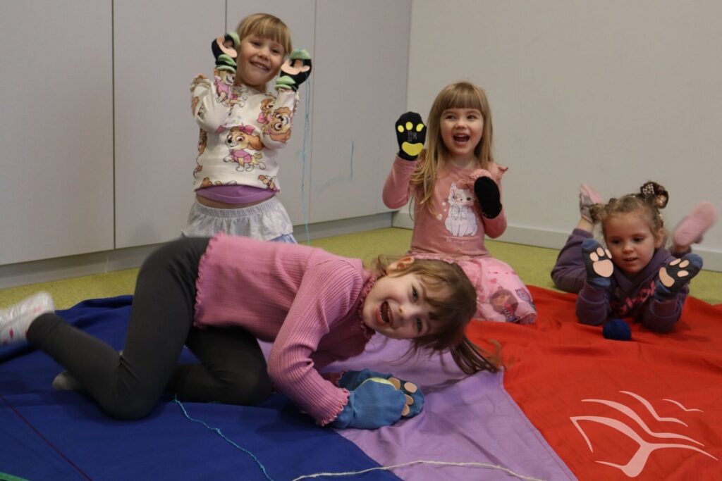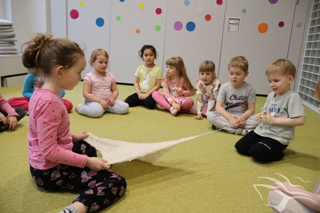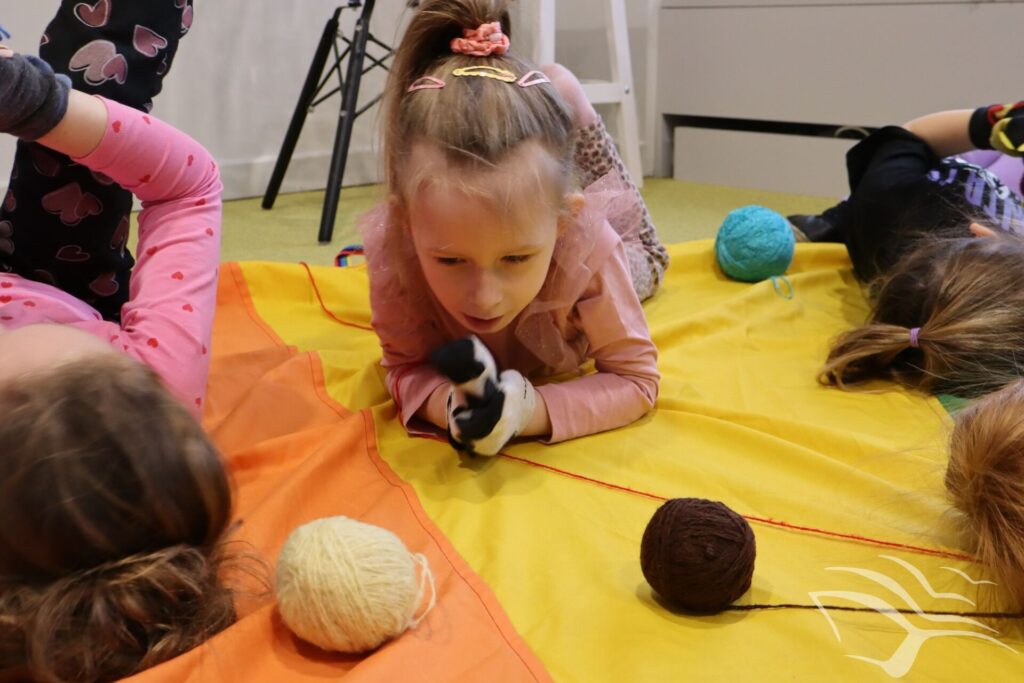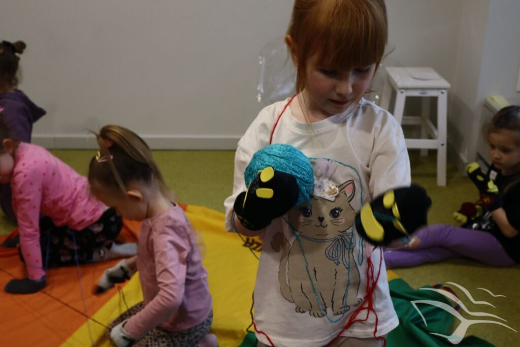 Kociaki-łobuziaki opanowały Bajeczne Podróże! Podczas zajęć wcieliliśmy się w bohaterów książki autorstwa Macieja Szymanowicza pod tytułem „Kociaki-łobuziaki i rwetes ze swetrem”. Było to co kociaki lubią najbardziej – mnóstwo zabaw z kłębkiem wełny. A dzięki pomocy rodziców i babć powstały urocze sweterki.