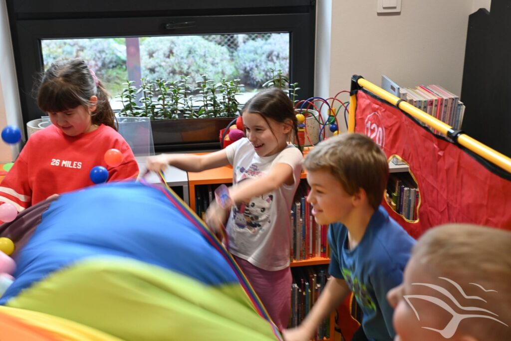 Następnie odbyła się gra Koło Fortuny podczas której dzieci odpowiadały na pytania, wykonywały zadania oraz pokonywały przeszkody.