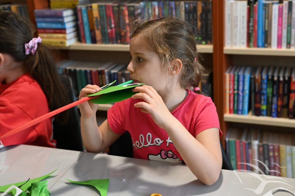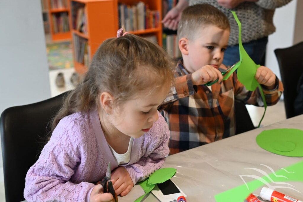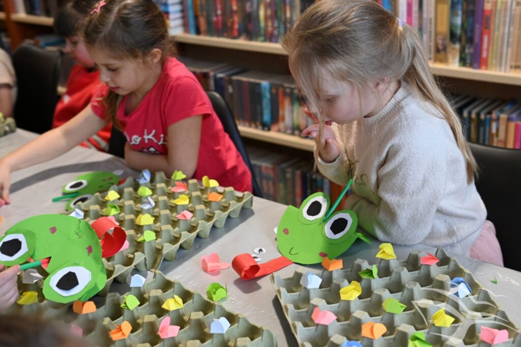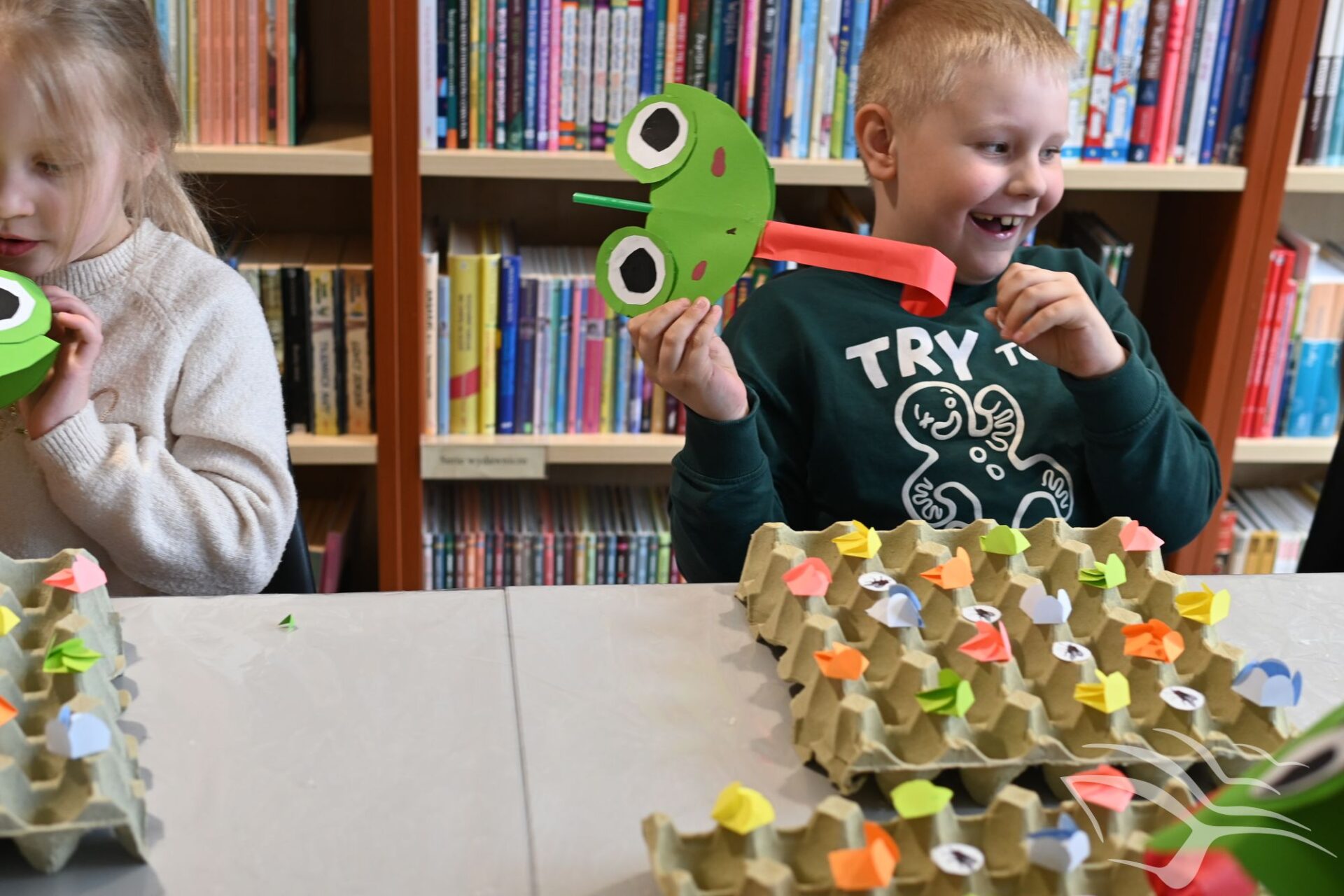 Podczas kolejnej, artystycznej części, dzieci stworzyły własne żabki, które następnie „łowiły” muchy z przygotowanych wcześniej łąk. Na łąkach pojawiły się także wyjątkowe kwiaty, które otwierały się pod wpływem wody.