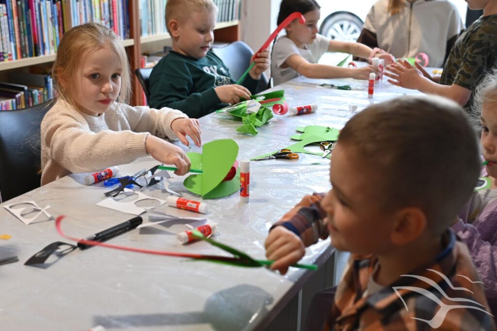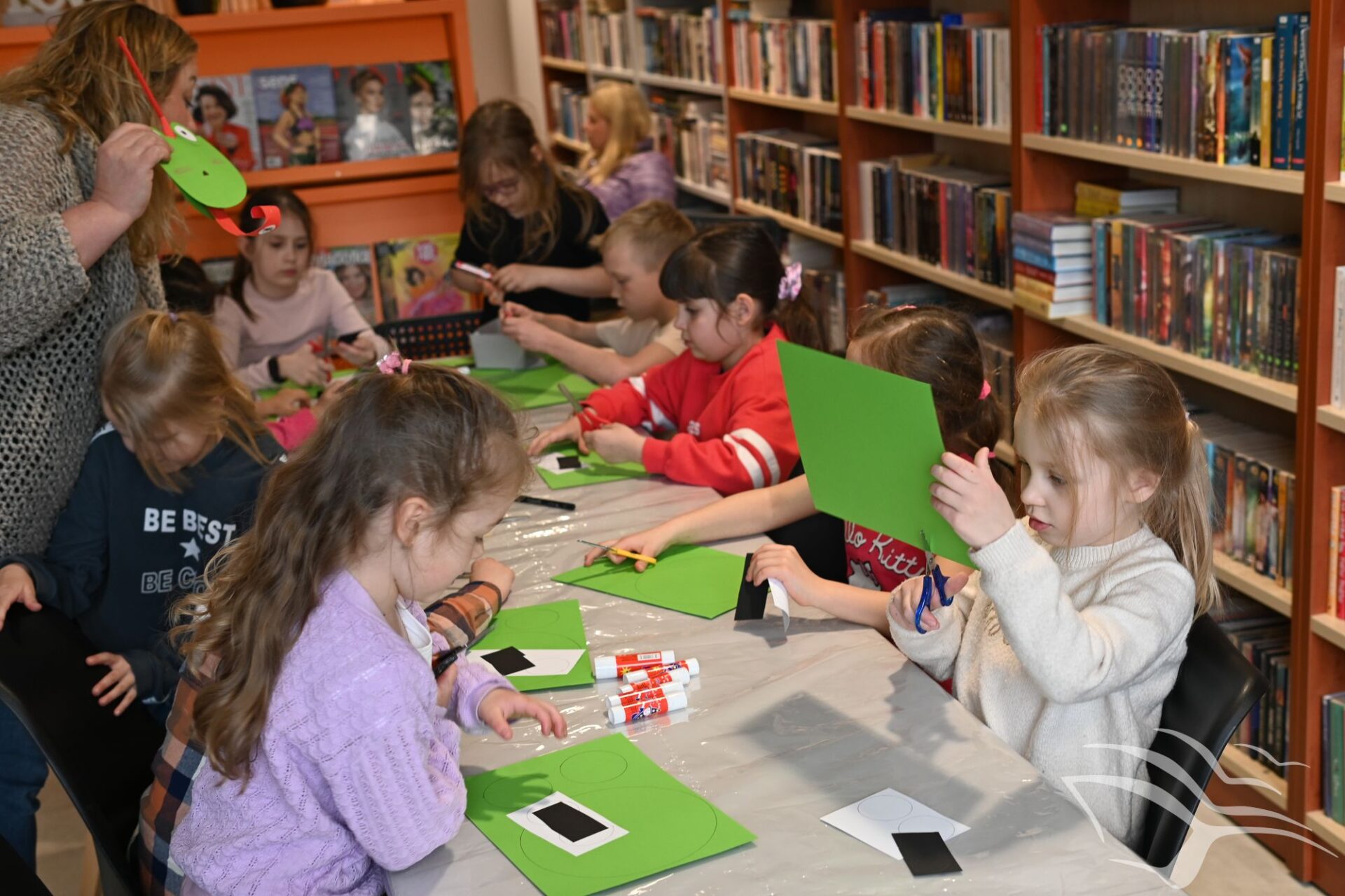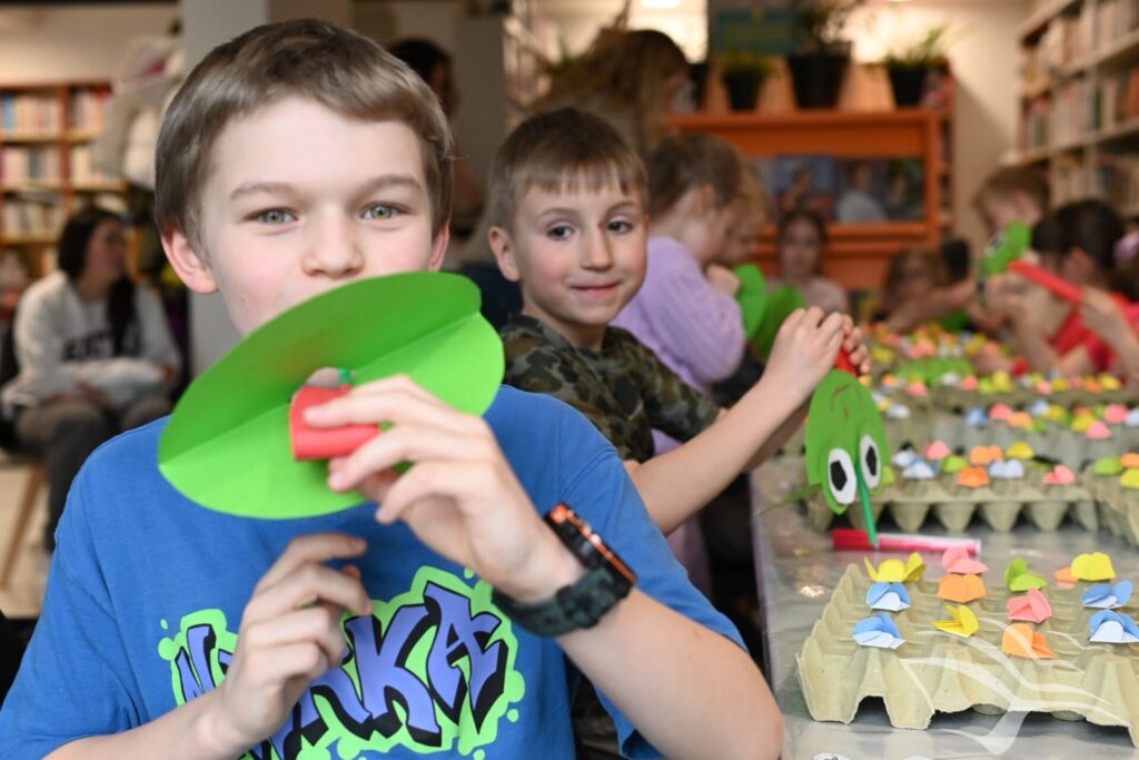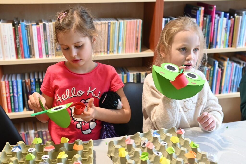 Podczas kolejnej, artystycznej części, dzieci stworzyły własne żabki, które następnie „łowiły” muchy z przygotowanych wcześniej łąk. Na łąkach pojawiły się także wyjątkowe kwiaty, które otwierały się pod wpływem wody.