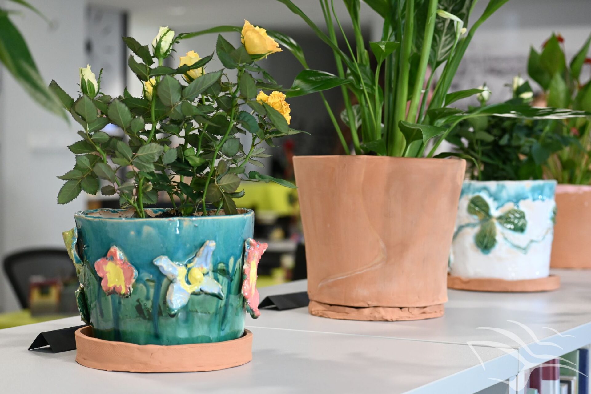 Podczas zajęć w Młodzieżowym Domu Kultury, prowadzonych przez Panią Elżbietę Tarnowską, powstały przepiękne prace: kubki, talerze, wazony oraz doniczki, w których posadzone zostały kwiaty.